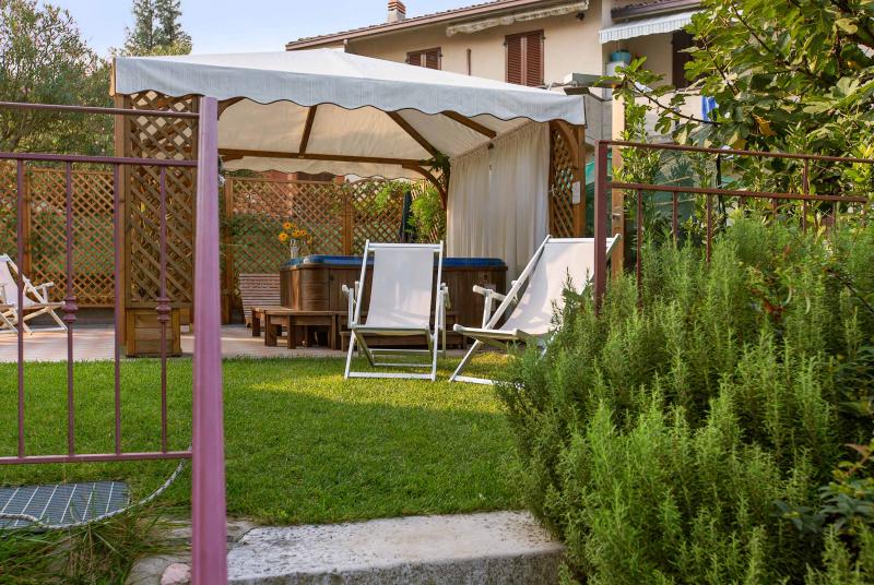 Mini piscina Jacuzzi (mod. Santorini) esterna condivisa, utilizzabile privatamente (in inverno salvo preavviso di 48h con pagamento extra).