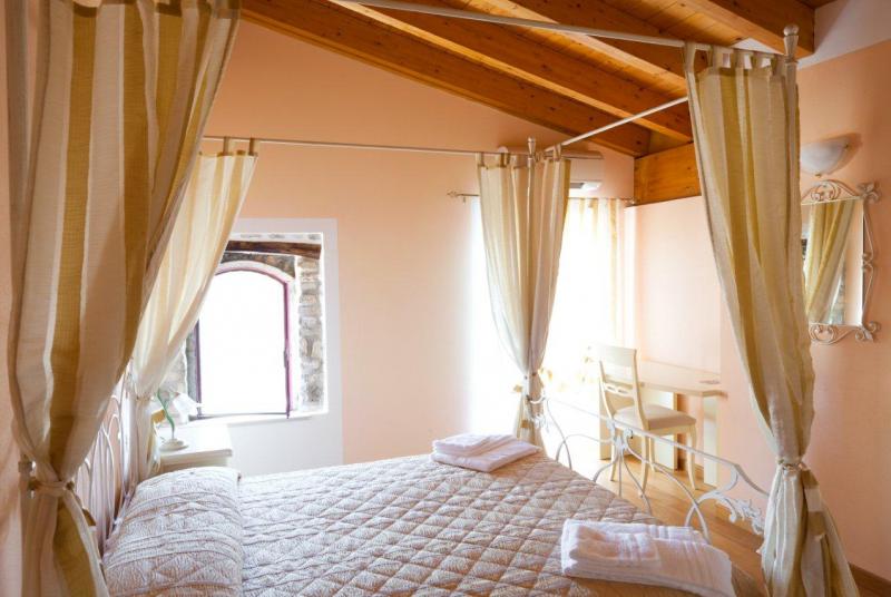 Suite 2: letto matrimoniale e bagno con vasca idromassaggio in camera climatizzata.